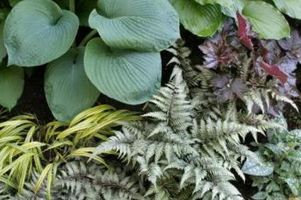- Многолетники : эти сорта хорошо растут в тени и хорошо переносят холодную погоду. Хосты являются одними из самых популярных многолетников и имеют более 2500 сортов с цветами оттенков розового, золотого, белого, светло-фиолетового и розового цветов и большими листьями разной формы. Другие излюбленные многолетники, любящие тень, включают колокольчики Вирджинии, примулы, кровоточащие сердца, водосбор, лестницу Джейкоба и наземные орхидеи.