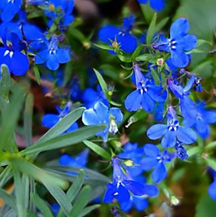 Отдельные цветы крошечные, но месяцами украшают поверхность листвы, кажется, что они парят над листьями. Листья одинаково мелкие, овальной формы, расположены на тонких нитевидных стеблях. Некоторые сорта однолетней лобелии имеют листву с бронзовым оттенком, которая создает потрясающий контраст с темно-синими цветами.