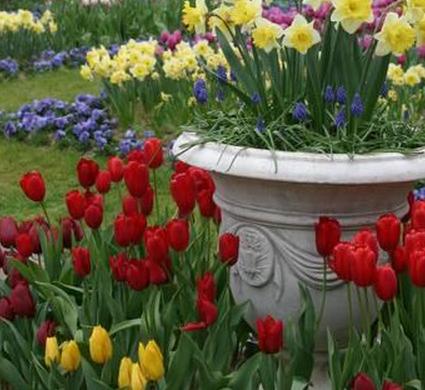 Если вы наполните горшок луковицами одного вида, например, красными тюльпанами или желтыми нарциссами, вы сможете поместить этот цвет именно там, где хотите, когда луковицы расцветут, даже если это место будет не очень удачным. место для луковиц, посаженных в землю. Подчеркните свой вход или внутренний дворик серией контейнеров, наполненных цветущими луковицами!