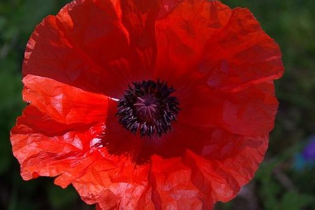 Полевой мак ( Papaver rhoeas ), также известный как кукурузный мак, обыкновенный мак или фламандский мак, вырастает от двух до трех футов в высоту и имеет карминно-красные цветки шириной от двух до трех дюймов с темными центрами. Это мак, связанный с Днем памяти, когда его традиционно носят на лацкане в честь павших воинов.