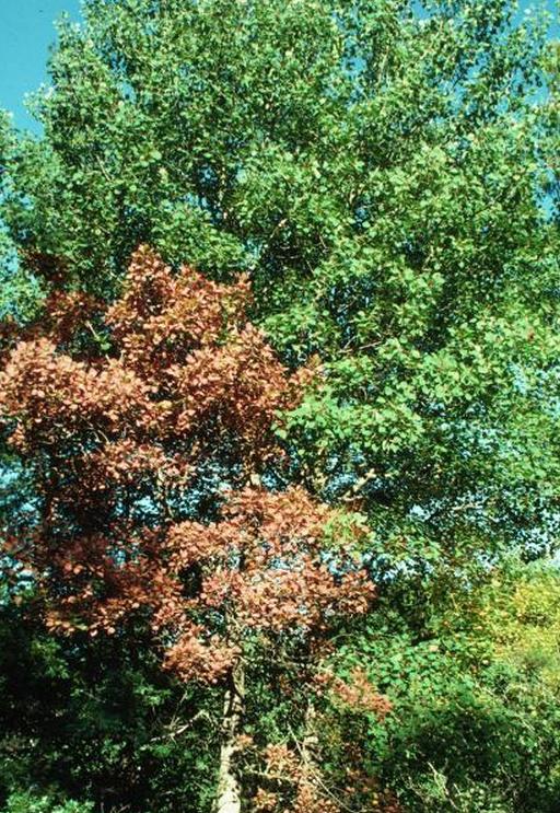 Лиственные деревья могут сбрасывать листья в течение вегетационного периода, если они умирают. Если листья становятся коричневыми и ломкими в течение вегетационного периода, дерево может погибнуть. Желтые листья на дереве, которое обычно имеет зеленые листья, также являются признаком проблемы.