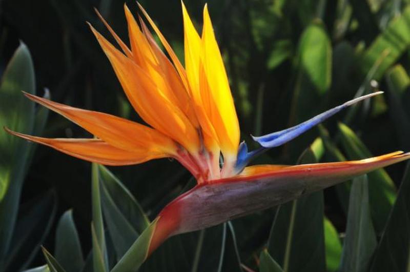 Цветы поднимаются на собственных стеблях к вершине листвы, прежде чем раскрыть свои экзотические цветы. Измененная структура листьев образует зеленый «клюв» растения, из которого выходят оранжевые чашелистики и синие лепестки. В тропических регионах райская птица цветет почти круглый год, но в умеренном климате это вид, цветущий летом.