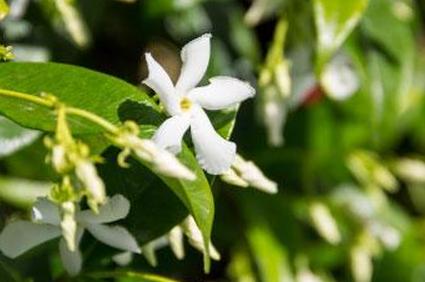 Жасмин звездчатый ( Trachelospermum jasminoides ) также называют жасмином Конфедерации и компасом торговца. Это из Японии, Кореи, южного Китая и Вьетнама. Звездчатый жасмин получил прозвище Конфедеративный жасмин из-за его происхождения в Малайской Конфедерации. Его называют компасом торговцев, потому что в Узбекистане говорят, что звездчатый жасмин поведет торговцев в правильном направлении, если у них хороший характер. Звездчатый жасмин относится к семейству Apocynaceae.