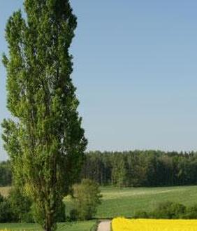 Черный тополь быстро вырастает до 100 футов и более, но ему не хватает гладкой коры и беловатого цвета, как у белых тополей; этот вид примечателен прежде всего сортом под названием Ломбардский тополь, который имеет чрезвычайно столбчатый характер роста с шириной кроны менее десяти футов.