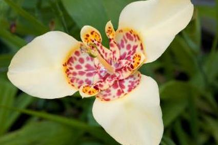 Цветок тигра (Tigridia) — Луковичные растения с очень эффектными цветами, обычно не выносливые. Наиболее известным видом является T. Pavonia из Мексики, растение многих форм и садовых сортов, отличающееся по форме или цвету от родительского растения, с его крупными цветками 5 дюймов в поперечнике, светящимися алым и оранжевым цветом.