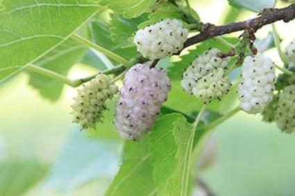 Уроженец Азии белая шелковица ( Morus alba ) обладает самой высокой устойчивостью к холоду из трех типов и морозостойка в зонах USDA с 4 по 9. Это большое дерево в зрелом возрасте, вырастающее более 50 футов в высоту и ширину. Шелковица белая зацветает и плодоносит раньше двух других видов, начиная процесс цветения ранней весной. Листва этой специфической шелковицы является основной пищей шелковичных червей, используемых для производства шелка. Многие считают этот сорт наименее вкусным из трех видов, потому что ягодам не хватает терпкости. Плоды самые маленькие, их цвет варьируется от белого, розового, черноватого до фиолетового. Листва крупная, глянцево-зеленая с глубокими лопастями, в то время как листва красной и черной шелковицы не имеет блеска и тускло-зеленая.