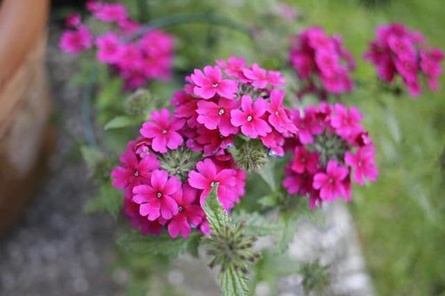 Стелющиеся вербены — это почвопокровные растения, которые обычно используются там, где они каскадом свисают со стены или края горшка.
