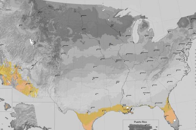 Из-за топографии и климатических условий штаты имеют более одной зоны устойчивости. Микроклимат может создавать очаги более теплых зон в штатах, где в противном случае зимы значительно холоднее.