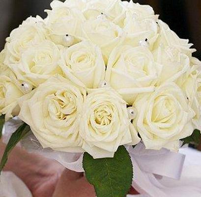 Розы имеют густые цветы, которые легко выдерживают акценты на булавках. Жемчуг и кристаллы популярны для вставки в цветы, чтобы добавить дополнительный блеск и романтичность простому свадебному букету.