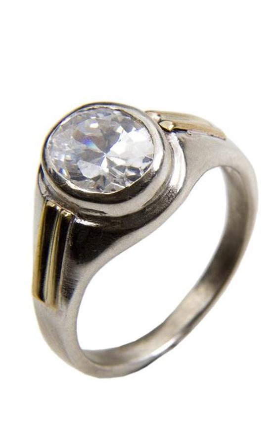 Контрастную металлическую вставку можно сделать менее резкой и нежной, если она будет выложена алмазной крошкой или акцентными камнями. Это также придает всему кольцу больше блеска и блеска, а брусчатка помогает выделить необычный металл вставки.