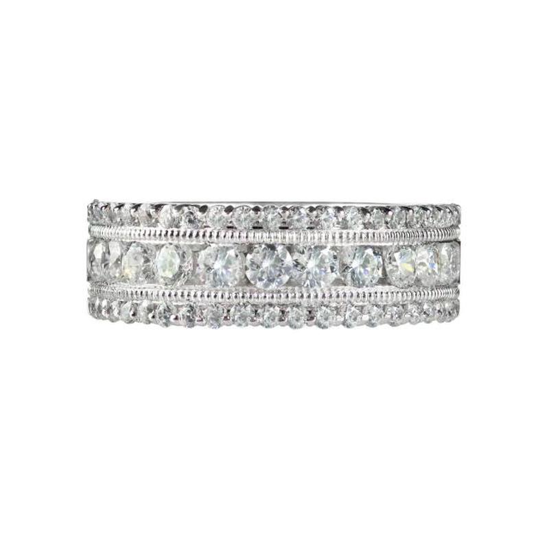 Кольца Eternity с одним обручем из камней — самый известный и самый популярный стиль юбилейных колец с бриллиантами. В то время как настройки канала наиболее популярны для колец вечности или бесконечности, настройка паве придает кольцу более изысканный вид и нотку уникальности, создавая шикарный и изысканный стиль.