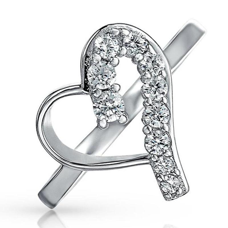 Одиночный бриллиант, плавающий в форме открытого сердца, — это элегантное и простое обручальное кольцо. Многие модели имеют простой ремешок, но закрученный стержень с круглыми бриллиантами в канальной оправе является современным и символическим подходом к этому дизайну.