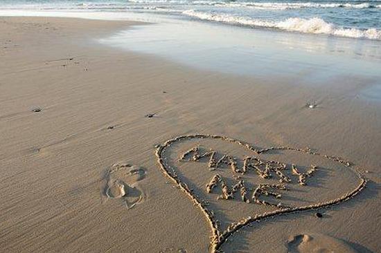 Первая фотография может установить сцену помолвки, даже если пара не изображена, написав ласковые слова или вырезав сердце на песке.