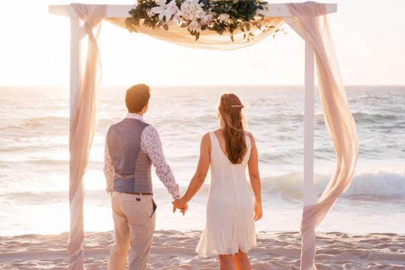 Для деревенской свадебной арки используйте простую зелень и струящийся шифон, чтобы добавить красоты. Шифон развевается на ветру и идеально подходит для мероприятий на открытом воздухе. Убедитесь, что вы хорошо закрепили его по углам арки, чтобы он не сорвался полностью. Добавьте нейтральную зелень, такую как папоротник или плющ, чтобы арка выглядела естественно и просто. Вы можете прикрепить зелень цветочной проволокой, чтобы ее не беспокоил пляжный или садовый бриз.