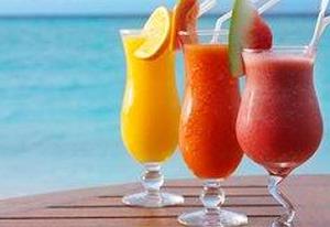 - Свежевыжатые фруктовые соки, такие как ананас, манго и смеси тропических пуншей.