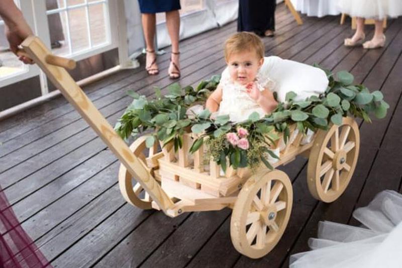 Отправьте цветочницу к алтарю в свадебной повозке в качестве творческого дополнения к церемонии . Эта детская игрушка — идеальный способ добавить нотку прихоти в вашу церемонию.
