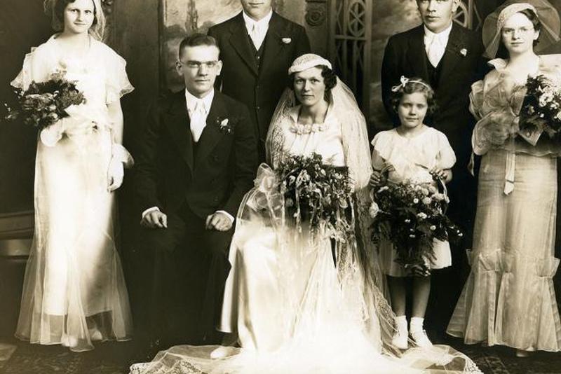 Каскады — они были в моде в 1910-20-х годах, от размеров букета с тянущимися лентами и виноградными лозами до огромных и впечатляющих. Однако популярность пышных букетов снизилась во время и после Второй мировой войны, когда невесты выходили замуж в костюмах в ЗАГСах, а сказочные свадьбы были менее распространены.