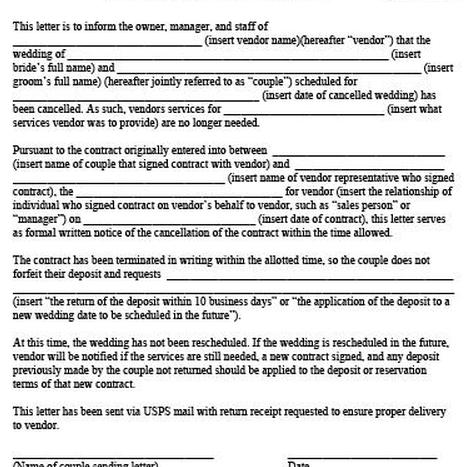 Первая задача при отмене свадьбы — уведомить продавцов. В зависимости от суммы уведомления, которое вы предоставляете, вы можете получить полное или частичное возмещение любого депозита или предоплаты.