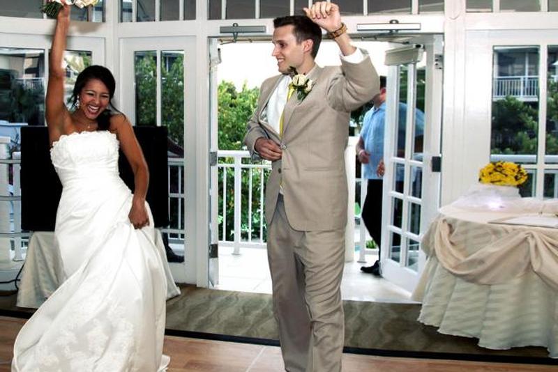 Знакомство на свадебном приеме обычно предлагает свадебный ди-джей или ведущий. Это действие открывает мероприятия свадебного приема и служит для официального представления пары, новобрачных и их родителей Этикет свадебного гостя .