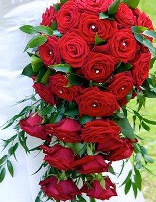 Классические красные розы — самый популярный выбор цветов. Традиционный каскадный букет — это элегантный и неподвластный времени цветочный стиль.