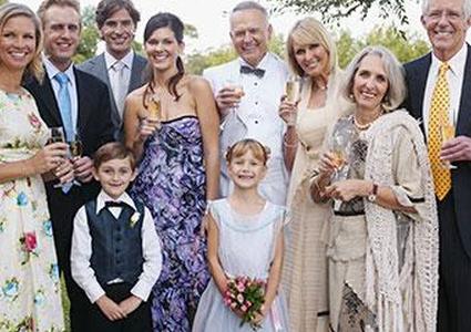 Мужчины обычно надевают на свадьбу костюм темного цвета. Это указывает на формальность, но не доводит эту формальность до уровня смокинга.