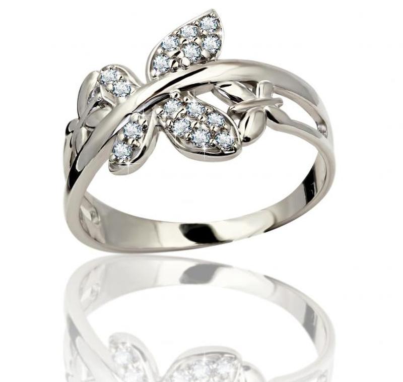 - Две бабочки поменьше на короне кольца, окружающие бриллиант или другой драгоценный камень.