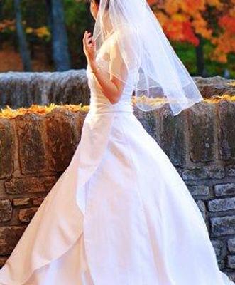 Свадебное платье с сильно фактурной юбкой, лифом с рюшами или другими тканевыми деталями может стать идеальным дополнением к насыщенным краскам осени, особенно если невеста предпочитает белое платье без деталей осеннего цвета. Вместо этого детали из ткани могут добавить изюминку свадебному платью.