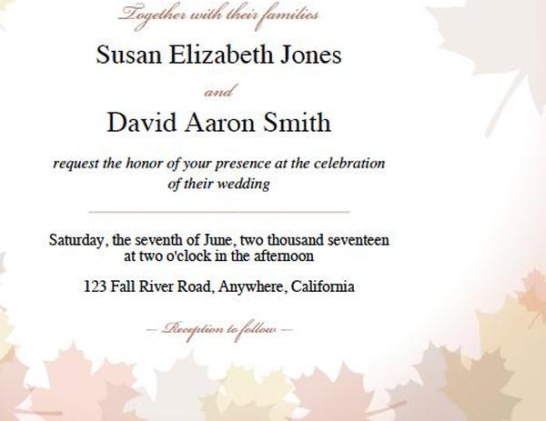 Скачать бесплатные приглашения на осеннюю свадьбу для печати