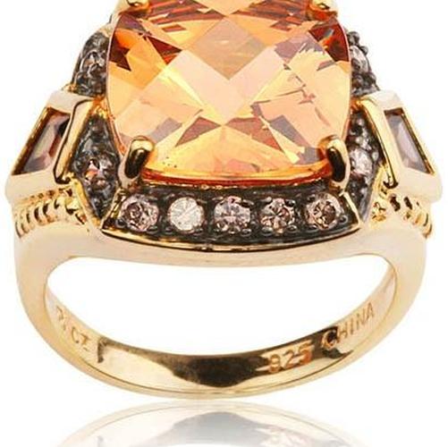 - Коричневое кольцо с кубическим цирконием — это массивное кольцо из стерлингового серебра от Amazon состоит из трех рядов кубического циркония в форме багета, окруженных кубическим цирконием коричневого цвета. Это кольцо продается по цене около 45 долларов.
