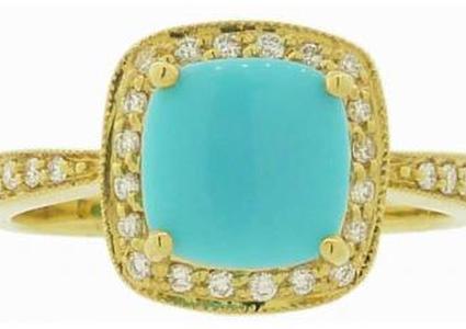 - Кольцо Southwest Originals с бирюзой и бриллиантом — Southwest Originals изготавливает каждое кольцо с бирюзой на заказ, поэтому вы можете выбрать один из множества прекрасных дизайнов. Кольцо с бирюзой и бриллиантом, расположенное в нижней части страницы, украшено бриллиантовым каналом весом 0,25 карата, украшенным полосой из желтого или белого золота, инкрустированной светящейся бирюзой. Кольцо продается по цене около 1700 долларов, как показано на рисунке, но вы можете настроить этот дизайн.