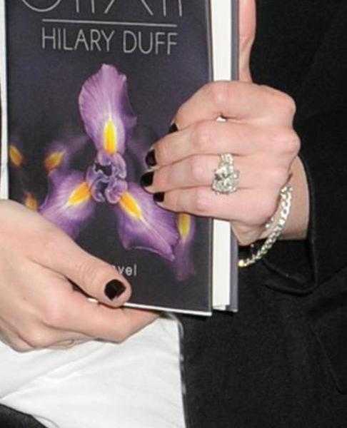 Обручальное кольцо, полученное Хилари Дафф от своего профессионального жениха-хоккеиста Майка Комри, является прекрасным примером обручального кольца знаменитости. По сообщениям eOnline и US Magazine, 14-каратное украшение огранки «принцесса» стоило один миллион долларов .