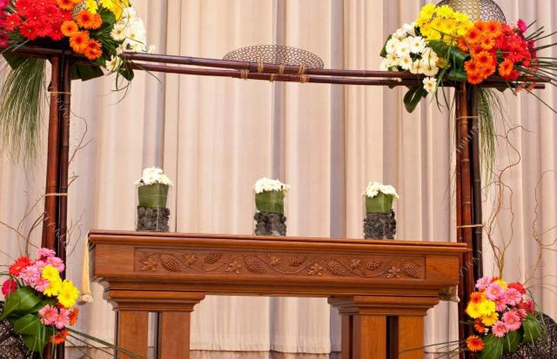 - Перенесите большие композиции из ромашек на стойку регистрации и разместите их в углах и на полках.