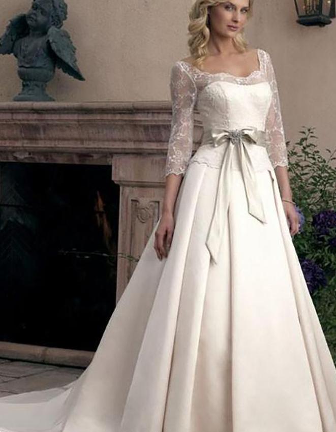 Рукава не должны закрывать плечи. Если вы хотите показать свое декольте, это идеальное платье. Снимите кружевную накладку с короткими рукавами, чтобы открыть атласное платье без бретелек. Casablanca делает это платье в четырех многоцветных сочетаниях: цвета шампанского, серебра, цвета слоновой кости и белого. Доступны размеры от 2 до 28.