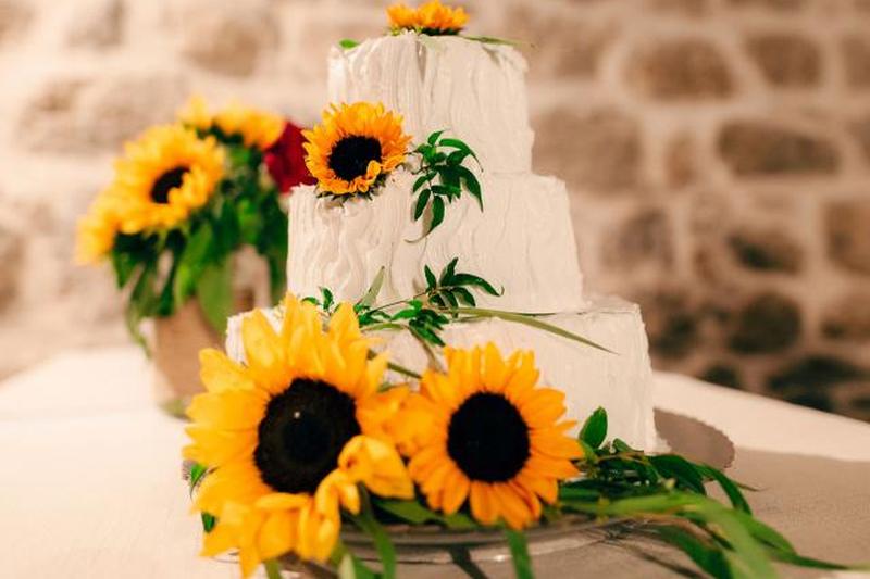 Свежие цветы, вероятно, будут иметь самый потрясающий эффект на торте. Их яркость почти не имеет себе равных в цветочном мире, а их размер делает любой торт, в котором они используются, автоматически привлекающим внимание. Однако имейте в виду, что если вы хотите использовать свежие подсолнухи на своем торте, вам придется заплатить за них, особенно если ваша свадьба в межсезонье и цветы должны быть доставлены откуда-то далеко. Чем больше у вас цветов, тем дороже будет общая сумма.