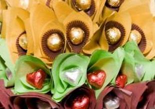 Для топиария из несъедобных конфет используйте развернутые шоколадные конфеты или желейные бобы, чтобы покрыть шар из пенопласта.