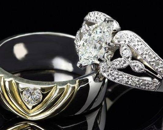 Обручальные кольца не обязательно должны быть простыми или предсказуемыми. Есть много прекрасных вариантов уникальных обручальных колец для него и для нее для пар, которые хотели бы, чтобы сочетания совпадали друг с другом без обычного вида простых золотых полос. Например, бриллиантовое кольцо для невесты может быть уникальным с мощеной лентой и зубчатыми вставками, в то время как кольцо жениха может иметь контрастные металлы, подчеркивающие один бриллиант.