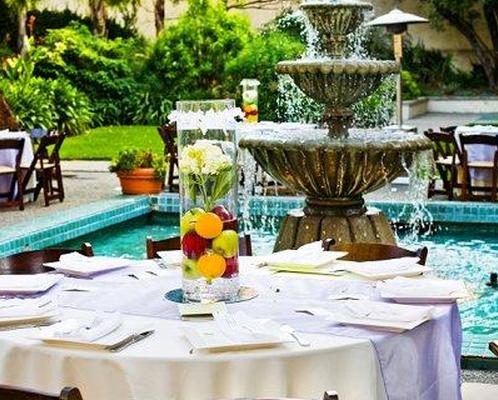 Во-первых, выберите место для свадьбы на открытом воздухе с уникальными особенностями. Каскадные фонтаны живописны и романтичны, они прекрасно дополняют декор вашего приема и сами по себе не нуждаются в дорогих украшениях.