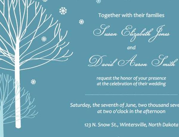 Формулировка для зимних приглашений дает возможность экспериментировать с замечательными фразами , связанных с сезоном. У многих компаний есть готовые шаблоны, которые вы можете выбрать или указать свою собственную формулировку.