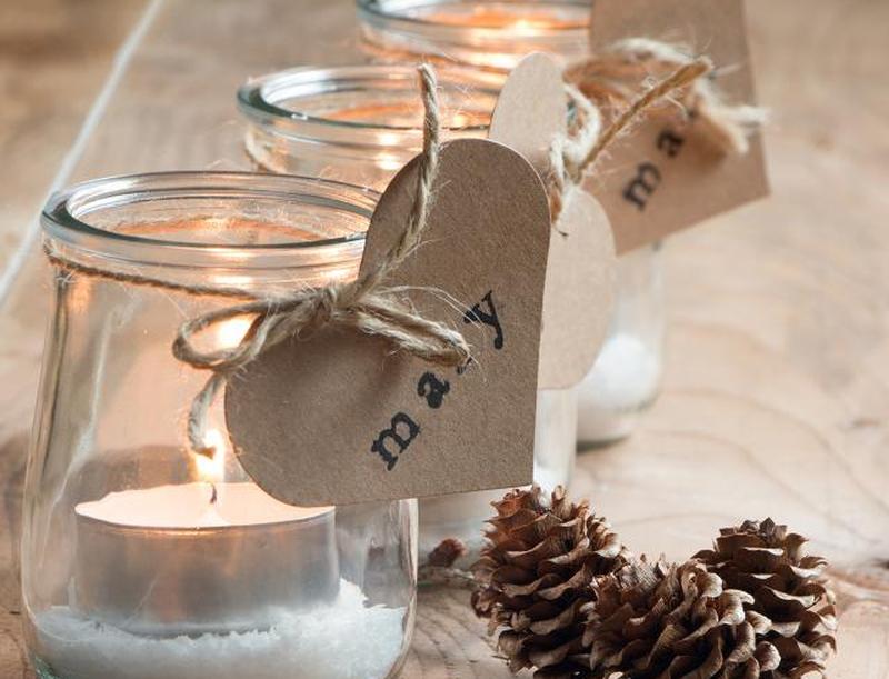 - Обвяжите горлышки банок бечевкой и проденьте в нее бирку.