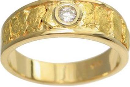 Кольца-самородки, традиционно ассоциирующиеся с мужскими украшениями, представляют собой золотые кольца с грубой каменистой текстурой. Поверхность кольца имеет вид необработанного золотого самородка. Кольца Nugget обычно изготавливаются из желтого золота. Некоторые кольца из золотых самородков довольно просты, но многие из них предназначены для демонстрации драгоценных камней, таких как бриллианты. Алмазы — популярное дополнение, потому что они придают дополнительный блеск текстурированной поверхности.