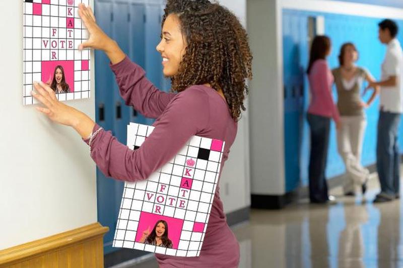 Если вам также разрешено раздавать листовки, подумайте о том, чтобы разместить свой слоган на листах бумаги размером 8×11 и раздавать их учащимся, когда они входят в здание и выходят из него.