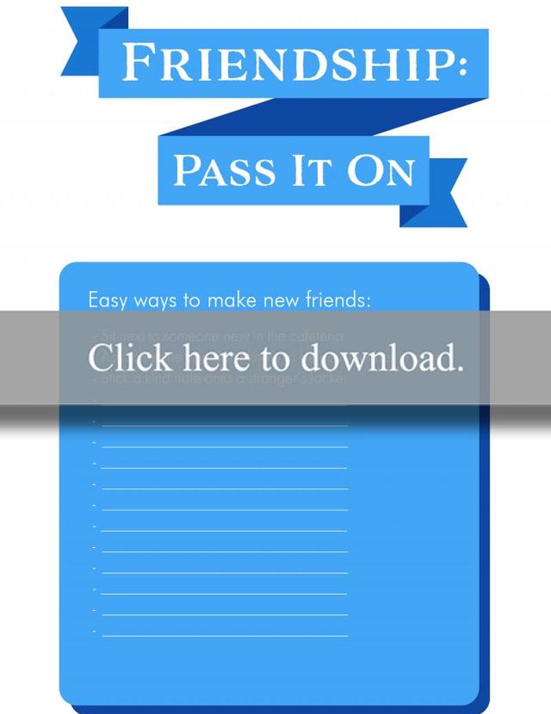 Поощряйте доброту, единение и дружбу с помощью этого плаката, на котором изображены подключенные к картинкам дети в синем цвете кампании Stomp Out Bullying Campaign . Добавьте предлагаемые способы завести новых друзей в вашей школе в нижнем разделе или дайте ему новый заголовок и список.