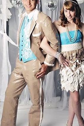 Вы можете даже попробовать свои силы в создании корсажа на запястье в виде розы из клейкой ленты. Парни определенно захотят носить бумажник с клейкой лентой, а также цилиндр с клейкой лентой и бутоньерку.
