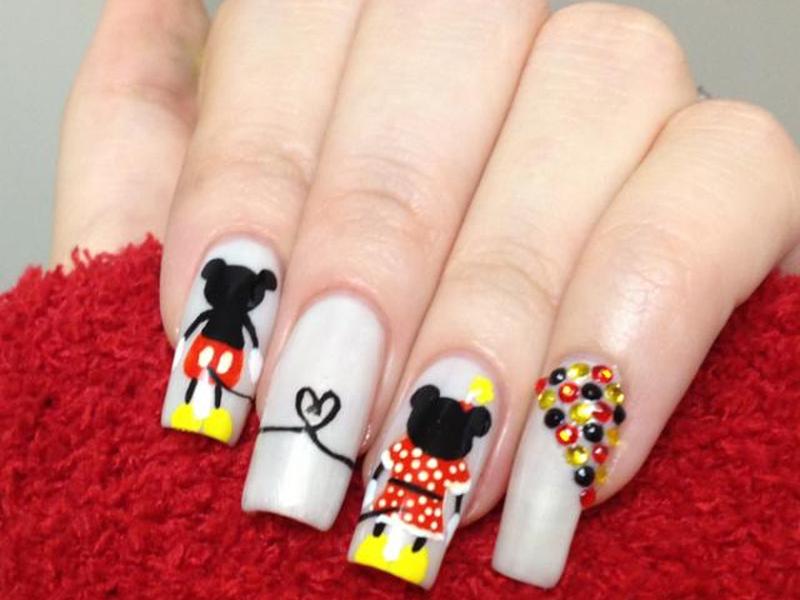 Этот простой дизайн не требует художественных навыков, так как вам просто нужно нанести декали на базовое покрытие. Этот дизайн начинается с двух слоев белого кремового базового цвета. Полное тело наклейки Микки Маус сделать его легко выполнить.