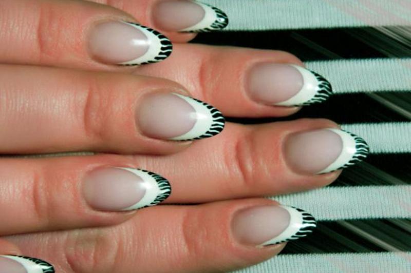 - Используйте белую ручку для дизайна ногтей, чтобы добавить детальную полосу над черным дизайном и под последней черной полосой на кончике.