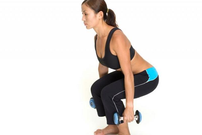 - На выдохе опустите ягодицы к земле, пока бедра не окажутся параллельны полу.