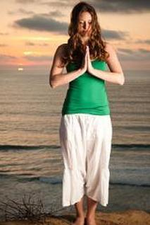 - Держа ладони вместе, вдохните и опустите руки к середине груди в позе молитвы.