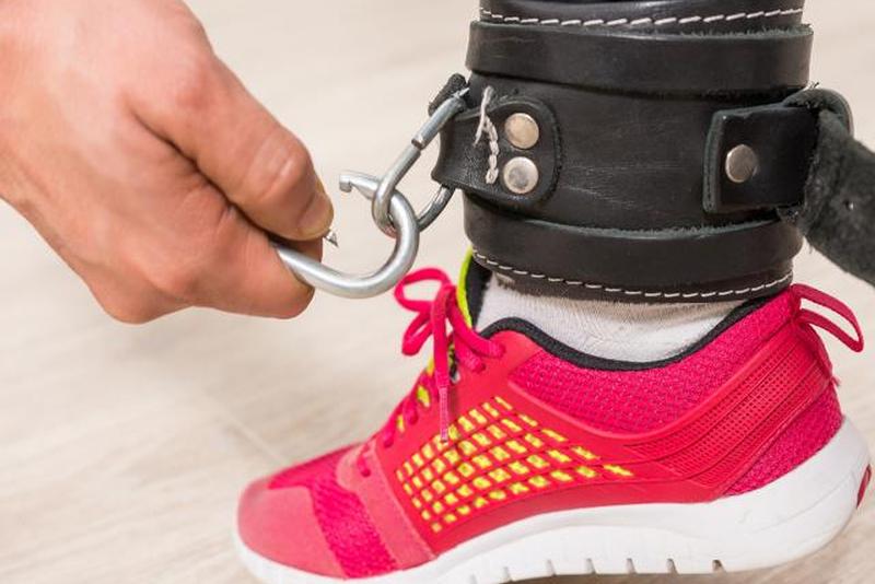 Надеть ремешок на щиколотку довольно просто — некоторые застегиваются на липучку, а другие имеют механизм, похожий на пряжку. Каждый ремешок снабжен крючком или петлей для соединения его с концом троса на канатном шкиве, который обеспечивает сопротивление при установленном вами весе и обеспечивает контролируемые плавные движения.