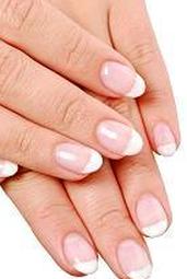 Покройте весь ноготь розовым лаком и дайте высохнуть. Нанесите клей на основание области кончика ногтя, которую вы хотите сделать белой (чтобы сформировать французский маникюр, состоящий из розового и белого акрила). Покрасьте непокрытый кончик белым лаком. Дать высохнуть. Нанесите прозрачный слой лака на весь ноготь и высушите.