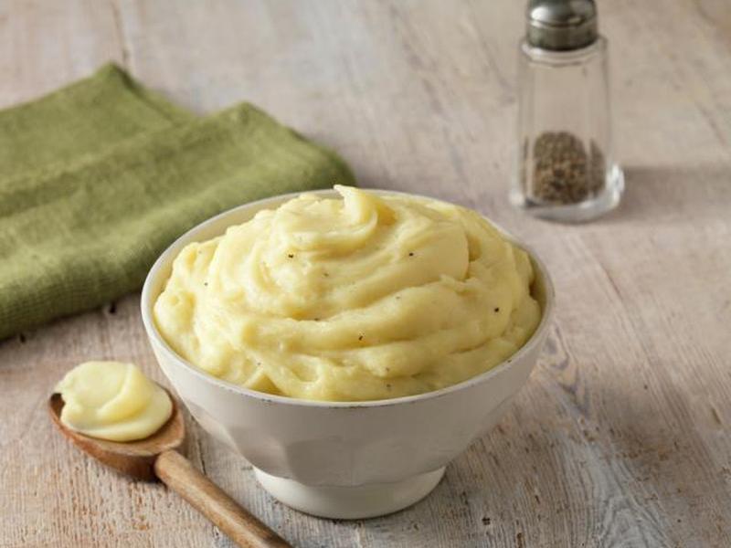 Приготовьте веганский чесночный картофель, заменив картофель красновато-коричневого цвета на 2 фунта цельного молодого красного картофеля, неочищенного. Добавьте в воду с картофелем 3 целых зубчика очищенного чеснока. Отварить до мягкости и размять с маслом, молоком, солью и перцем с помощью толкушки для картофеля, оставляя их немного комковатыми. Перед подачей добавьте 2 столовые ложки нарезанного свежего зеленого лука и 1/4 стакана тертого веганского сыра.